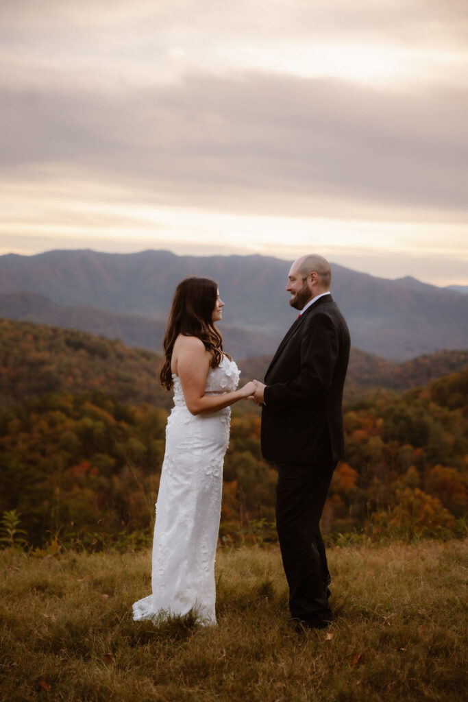 One of the things couples love most about eloping in the Smokies is how personal and relaxed it feels. But because the Foothills Parkway isn’t a traditional venue, you’ll want to keep your guest list on the smaller side to keep things smooth and respectful of the space.