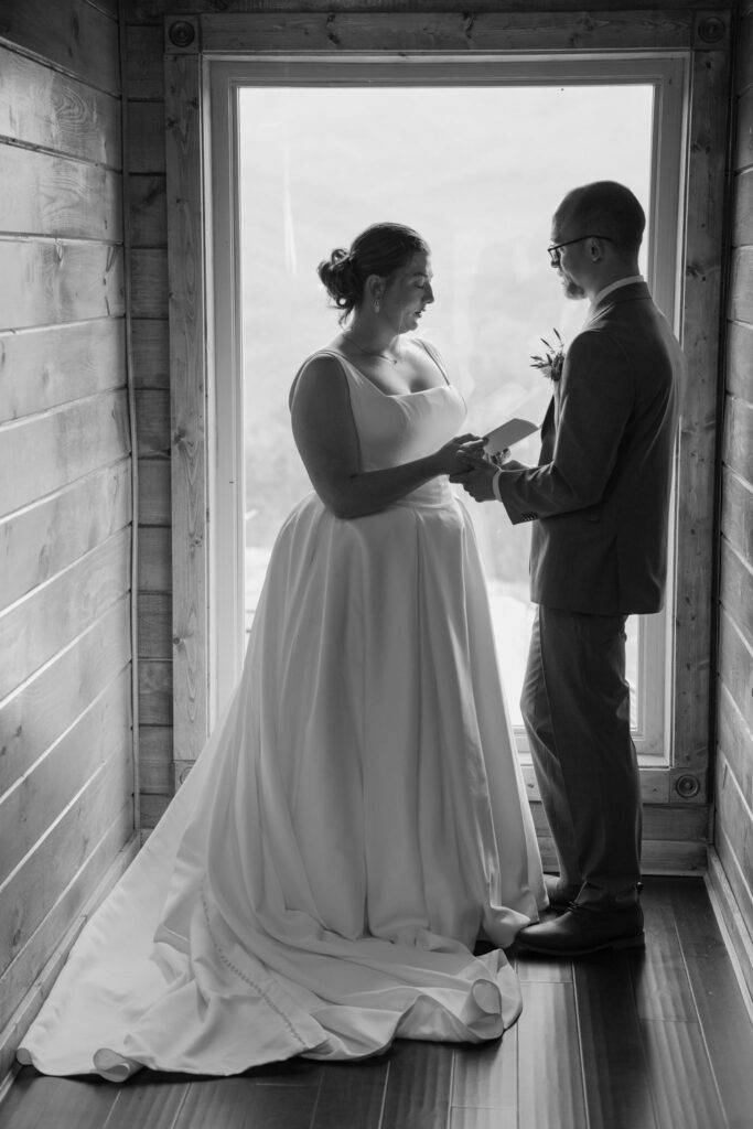 If you’re planning an outdoor ceremony, I’ll help you time it for the best light. This is usually early afternoon, since the sun dips behind the mountains quickly in winter. If we’re indoors, we can transform a cabin or chalet into the perfect cozy backdrop for vows and post-ceremony portraits.