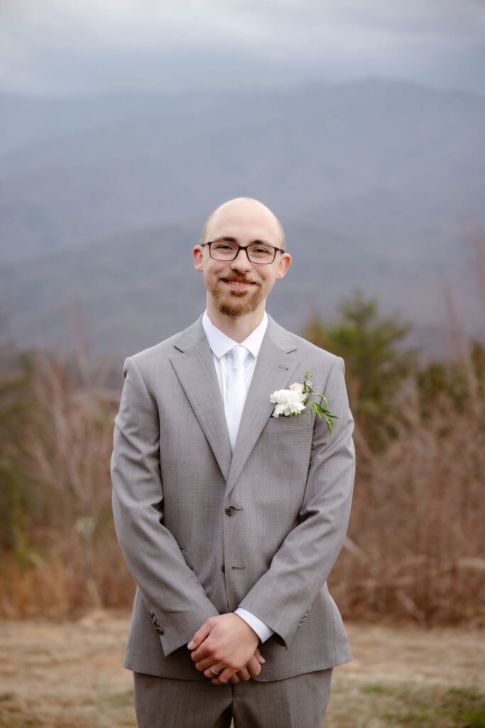 Weather in Gatlinburg during winter is part of the adventure. Some days are mild and sunny; others bring flurries or frost. I always recommend couples embrace the season rather than fight it. Let the landscape guide your aesthetic, soft textures, neutral tones, layered looks, and natural elements like evergreens and candlelight create an organic, elegant feel that complements the surroundings.