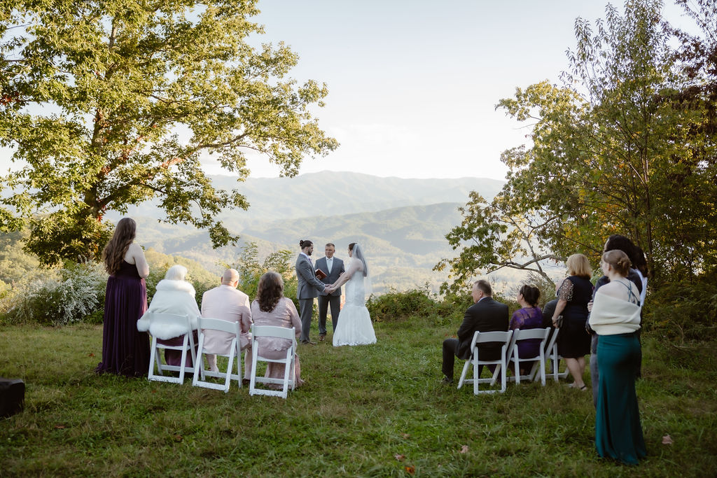 While this location is ideal for just the two of you, it’s also perfect for small weddings in the Smoky Mountains, usually up to 10–12 guests. For Ansley and Corey, we had 8 guests and a simple setup with white folding chairs. It felt intimate and peaceful, and the space handled it beautifully.