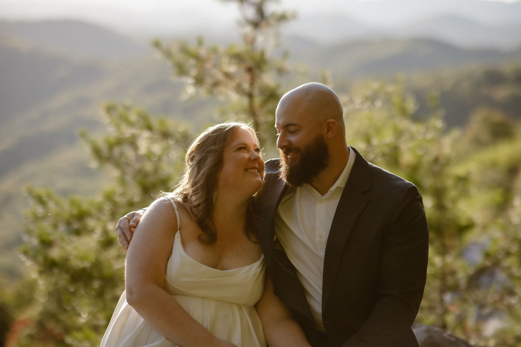 One of my favorite memories is of Kari and Drew, who eloped in the Foothills on a crisp fall afternoon. We found a quiet spot by the parkway, surrounded by golden leaves and soft mountain air. Their ceremony was simple and heartfelt, and afterward, we wandered through the woods capturing portraits that told the story of their love with warmth and authenticity. It felt like time slowed down, and that’s exactly what I want for every couple I work with.